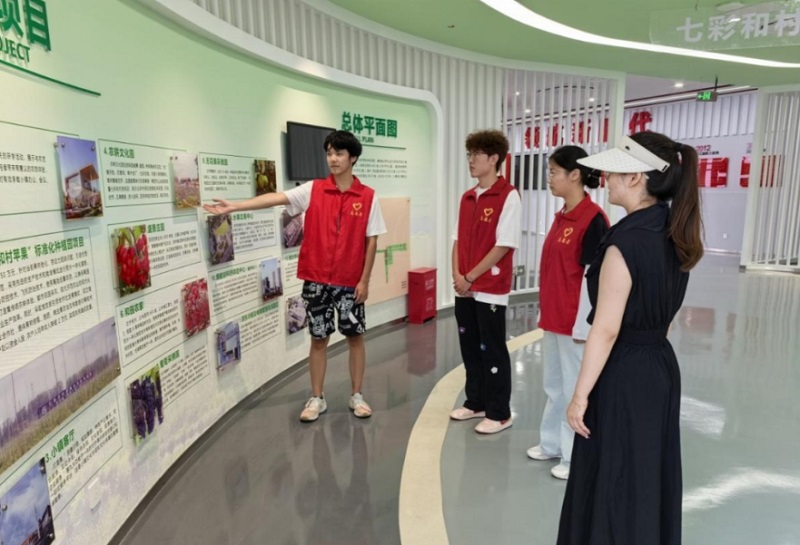 “文明實(shí)踐進(jìn)場館”環(huán)節(jié),經(jīng)培訓(xùn)的大學(xué)生志愿者化身“義務(wù)講解員”,走進(jìn)七彩和村小鎮(zhèn)客廳與和村水果交易中心,向游客講述宋疃在傳承中創(chuàng)新、踐行中發(fā)展的變遷故事,展現(xiàn)“產(chǎn)業(yè)+文明”催生的鄉(xiāng)村新貌。
